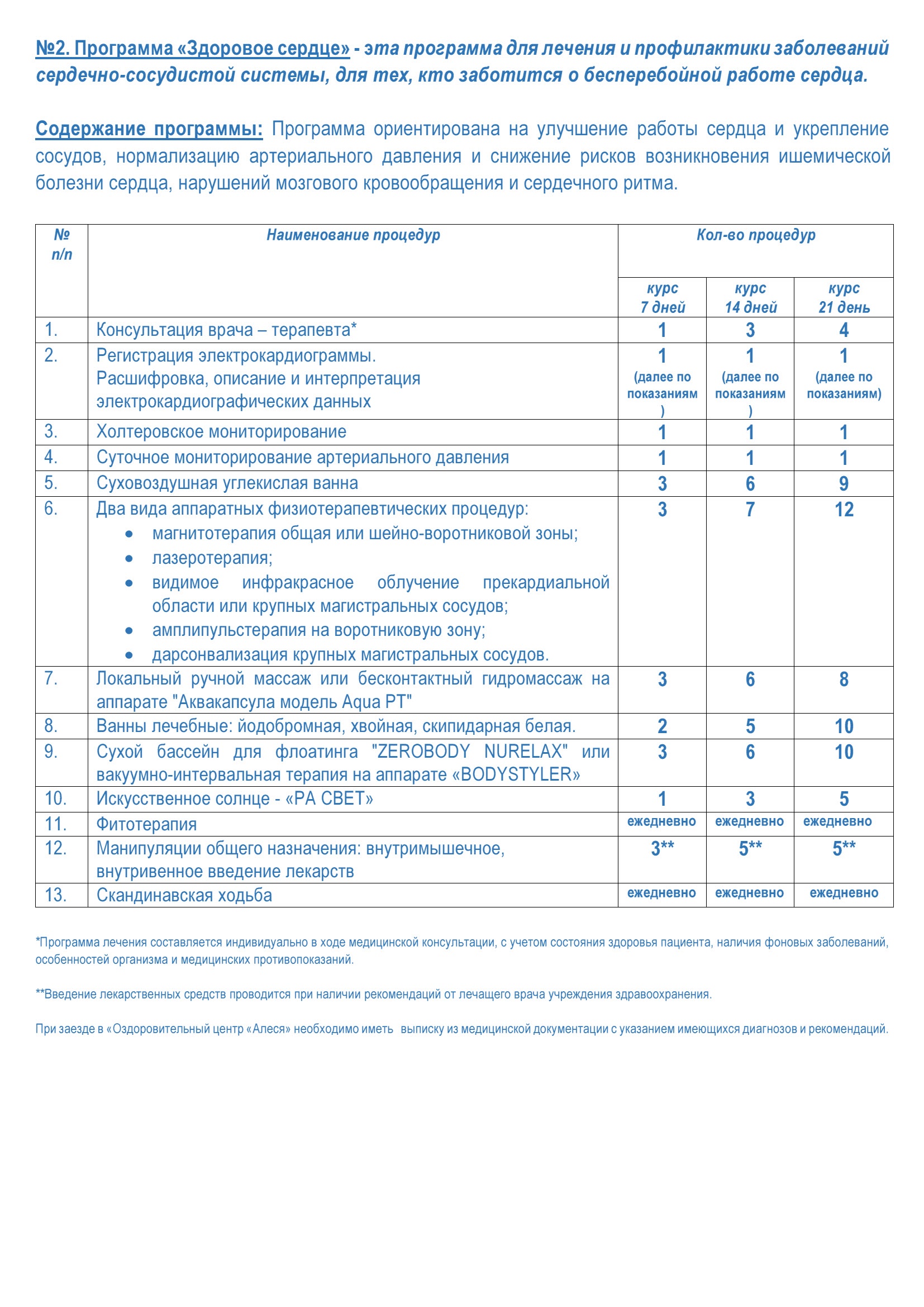При заезде в «Оздоровительный центр «Алеся» необходимо иметь выписку из медицинской документации с указанием имеющихся диагнозов и рекомендаций.
